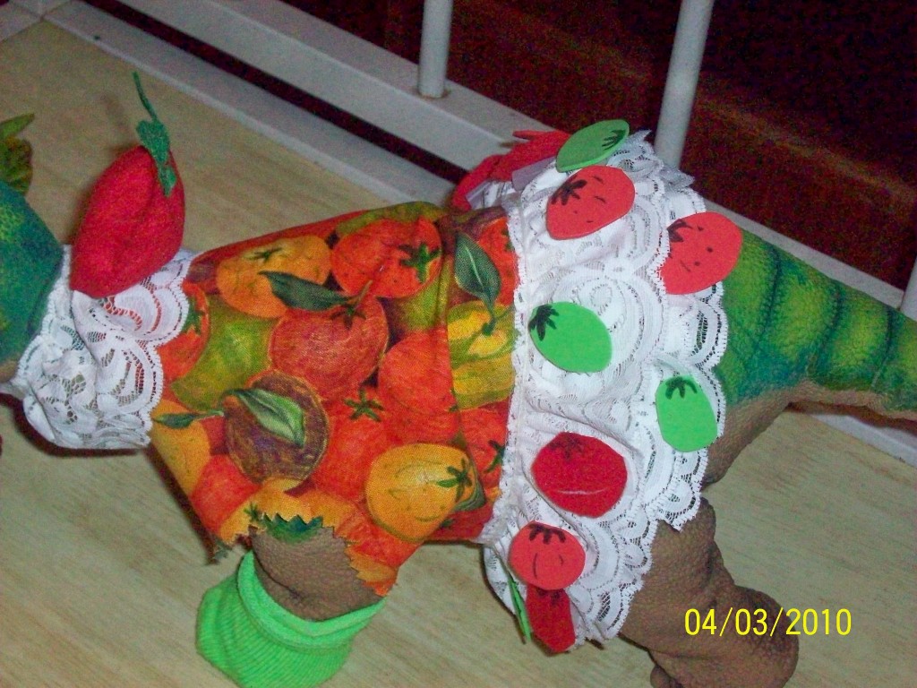 Well, the BIG DAY IS HERE AT LONG LAST! To start things off, Nova and I watched the sequel to  'The Killer Tomatoes, " by watching " Return of the Killer Tomatoes" She did most of the watching, as I was busy till 2:00 a.m sewing and finishing her handmade, handcolored Tomatoe dress entry for the Festival today. Nova says, You don't' have to be Dressed AS A TOMATOE, BUT IN A TOMATOE DRESS IS THE SAME THING! Notice not only does her dress have the typical red tomatoes, but also green, yellow and even the fancy purple! Tomatoes come in so many colors and sizes. She also is wearing her special Tomatoe Neck piece and it is trimmed in lace to match her lace trimmed dress. Her tomato dress started out as a simple tomato frock, and without the lace trim, it is suitable for a male pleo. Add the lace with tomatoes embellishments, and fit for the most feminine Pleo.( like Nova)