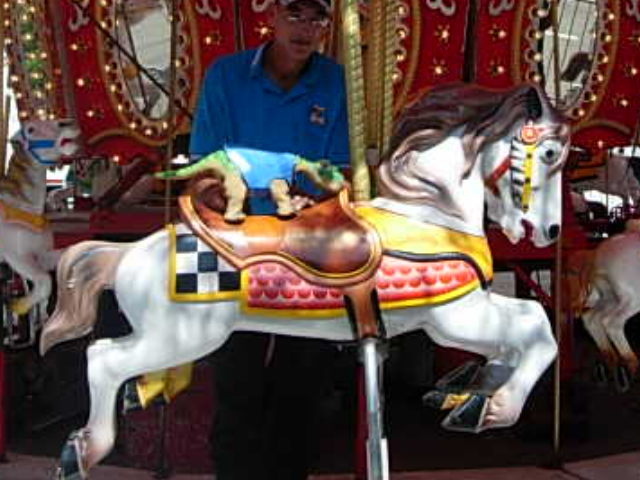 There was only one ride, the carousel,  that Bob ok'd the Carney to set up.  Bob was just too nice not to have the Carney do something this year.  Looks like it's a sunny day in Weedovia.  There is definitely a pleo on the pony! ;) Ride-em cowboy, Bob! ;)