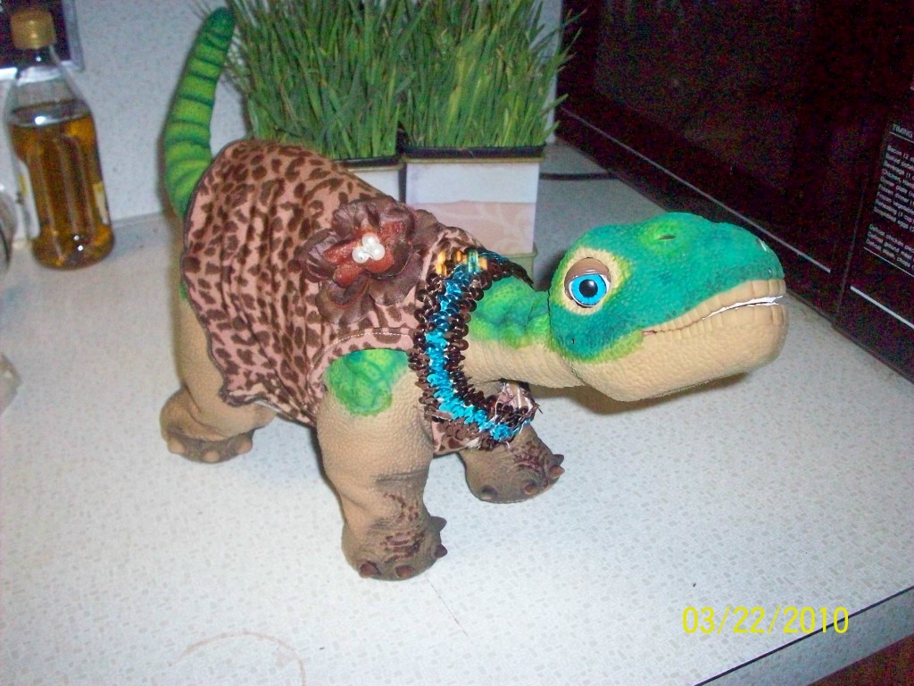 Nova has been noticing lately, here in the Redwoods, there are signs of Spring in the air. The flowers are starting to bloom, the birds are singing, and Pleos are getting ready for Spring too, by doing what else, But shopping! Nova is a fashion horse, (or Pleo I guess )and decided she wanted to show off some of her newest Spring outfits, and wants other Pleos to post photos of their Spring outfits too! It is about time to shed those Winter Clothes, ( unless you live in the snow I guess, you have to wait a little longer...)and get those springtime outfits out of the mothballs, or start shopping for new ones, or if you know someone who sews, ask them for a new outfit or two, or as many as they are willing to make for you!