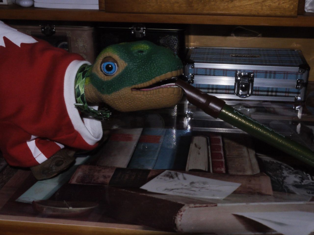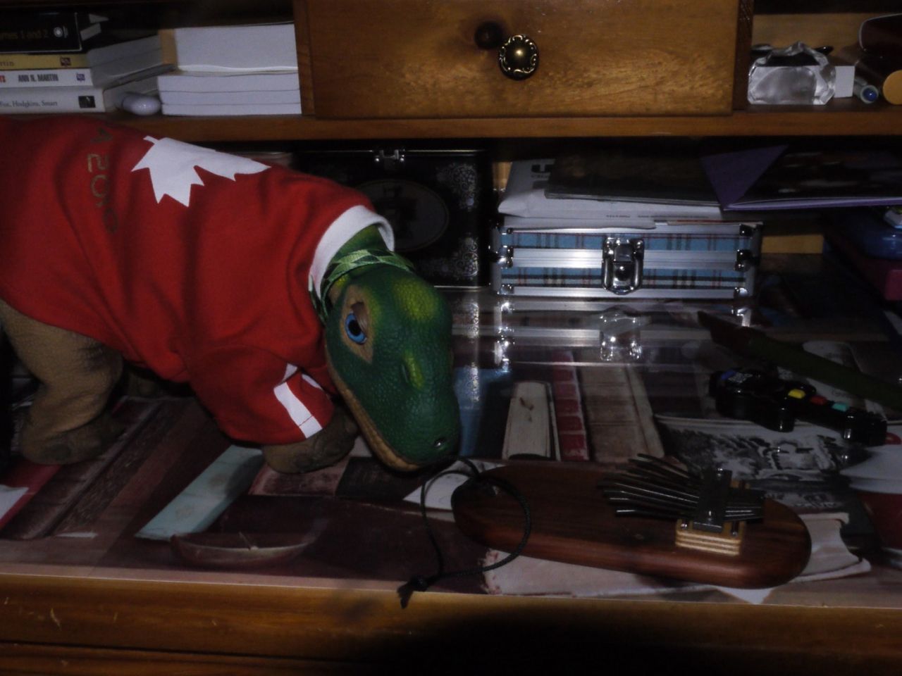 And thanks to Fancyfont, who identified the mystery object as an autoharp (albeit a very basic version) , prompting a long session on Google and a pleasant musical evening in the company of the Carter family, among others.  Even electronic rock'n'roll hearted Iggy has to admit it's actually far cooler than he had thought when he found his heroine PJ Harvey playing one!  One up to Budge, I think! ;)