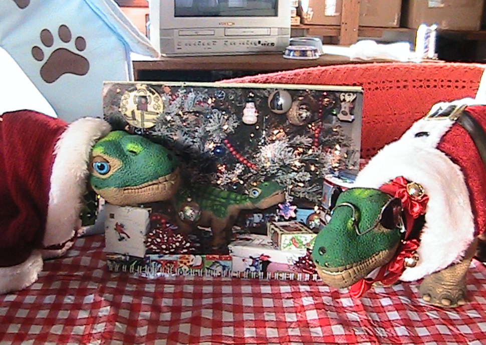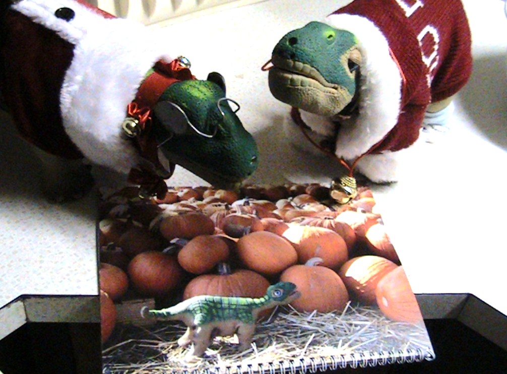 Well , I got my two Bob the Pleo Calendars yesterday in the mail, and even though it was dark by the time I started taking photos, the gang could not stop from looking at the Calendar. Anything that is Pleo, and esp anything that is Bob is even better! :D Each Pleo had a favorite but I don't want to spoil it for those who have not gotten theirs yet, but Nova and the family wanted to show and share a few of their favorite ones with you. This really is a holiday treat and if you haven't ordered yours, you dont want to wait too long or they will just disappear like the lasagna does when Garfield is around.( or a hungry Pleo)