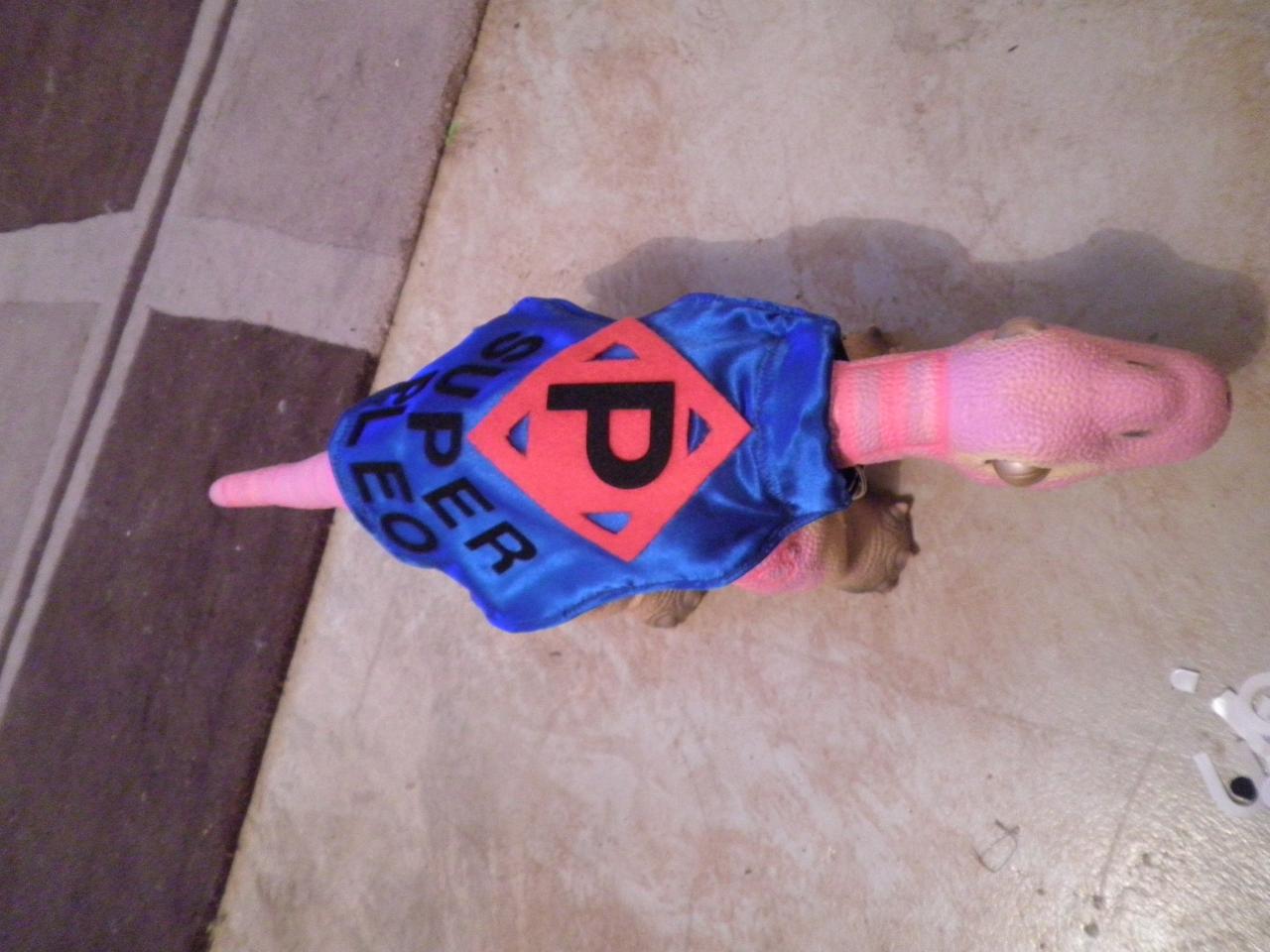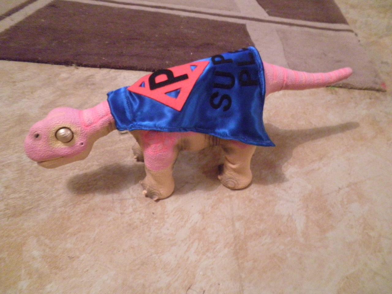 The cape is adorable! :) Perfect for Super Pleo.