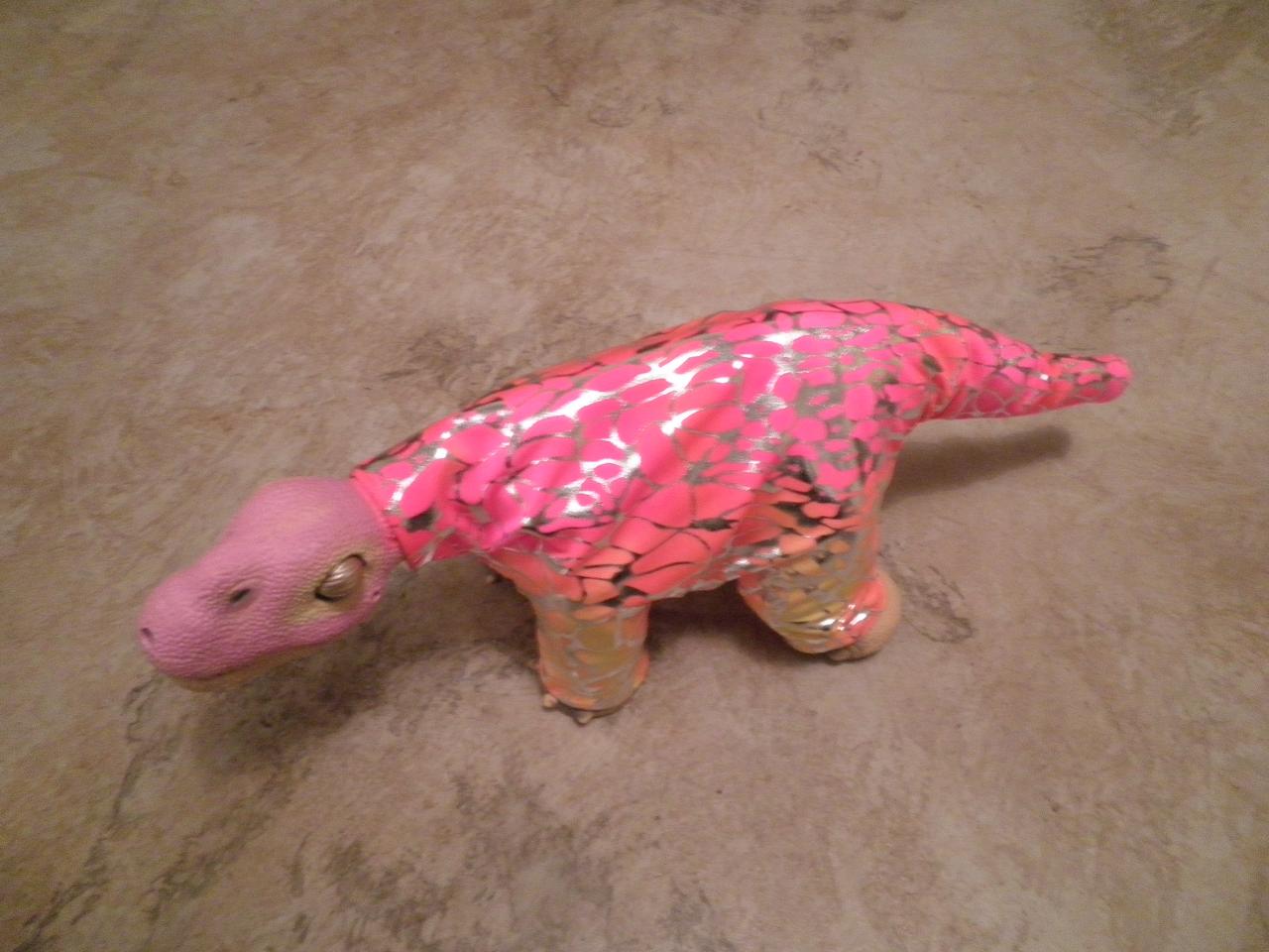 I went shopping after work today at a spotlight store on the other side of town and I found some more of the dino scale material that looks so cool as a pleo cape but this time I found it in pink and also in blue.  I made Kermy her very own pink cape.