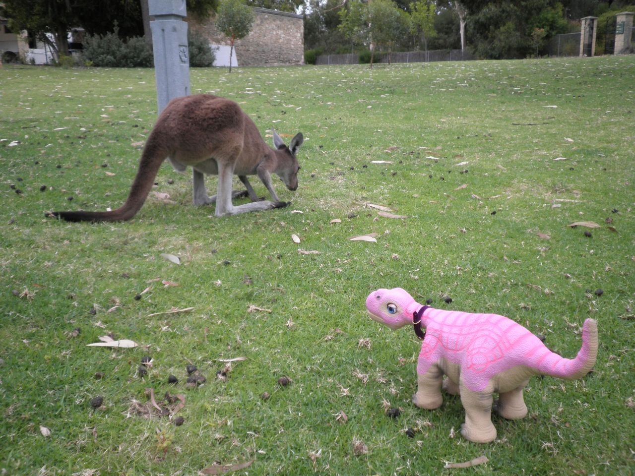 Then we just had to go say hello to the Kangaroos.  We had to be very quiet and move very slowly so as not to frighten them away as they are wild Kangaroos, not use to people or pleos.