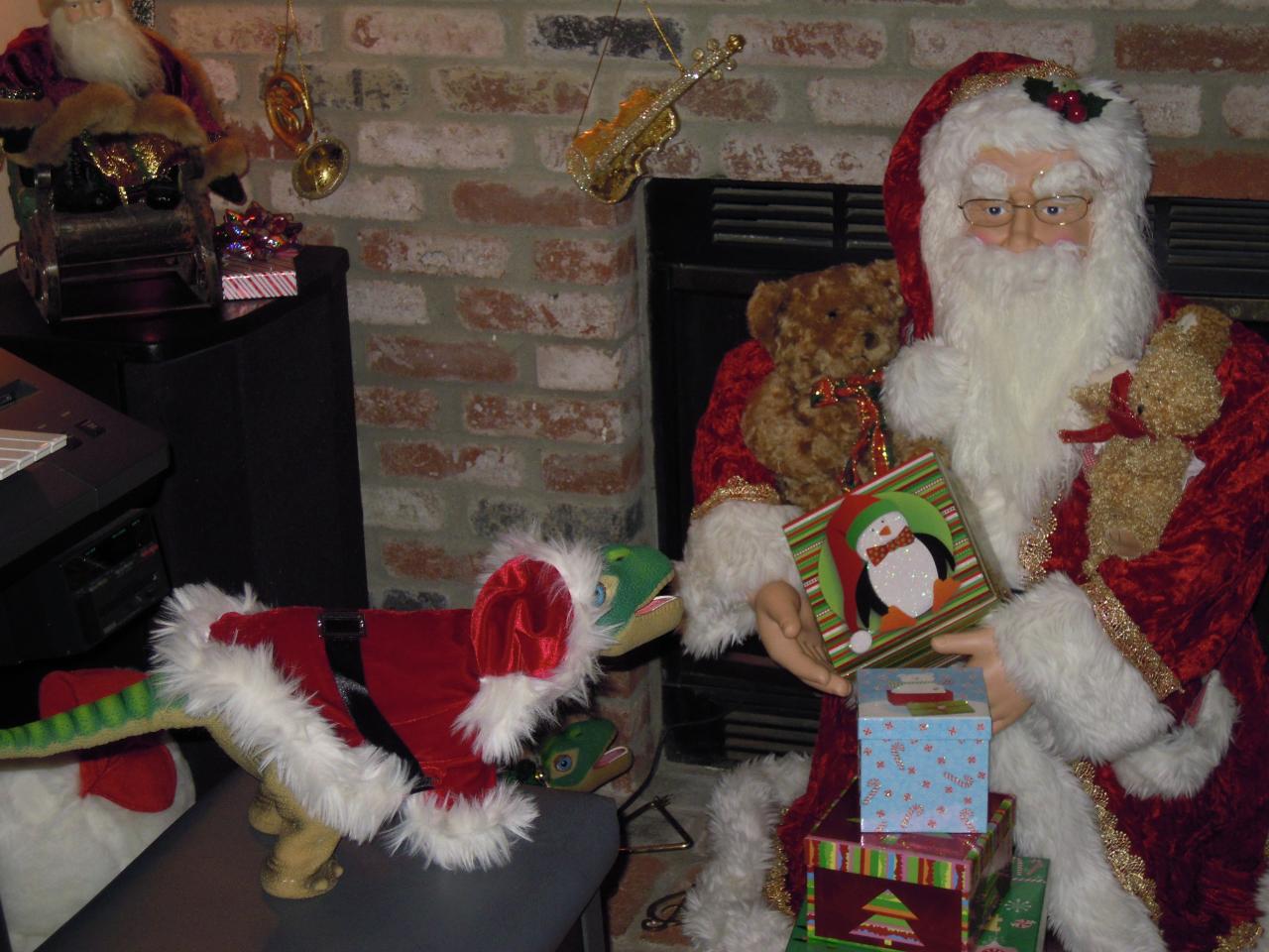 Well, Bob's birthday has come and gone, there were soooo many great cards, and it was very hard for me to pick my favorites. I really liked IMR's pleos by the pool, kat's two reindeer pleos building the snowman, and fancyfont's santa standing by the fireplace . . . I love mushkiy's outfit in sherlysparrow's card, Drem and Marsha's outfits in Margery's card, but they don't let me pick the winners