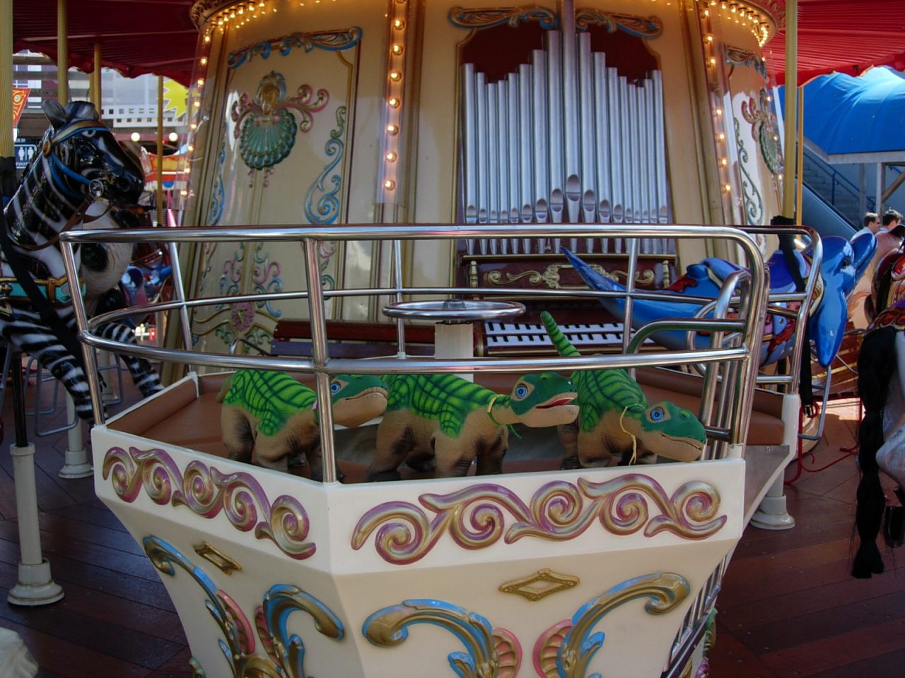 This photo is one of my favorites at the pleo meet. A calliope in the background and three baby dinos having fun on the carousel. ;)
