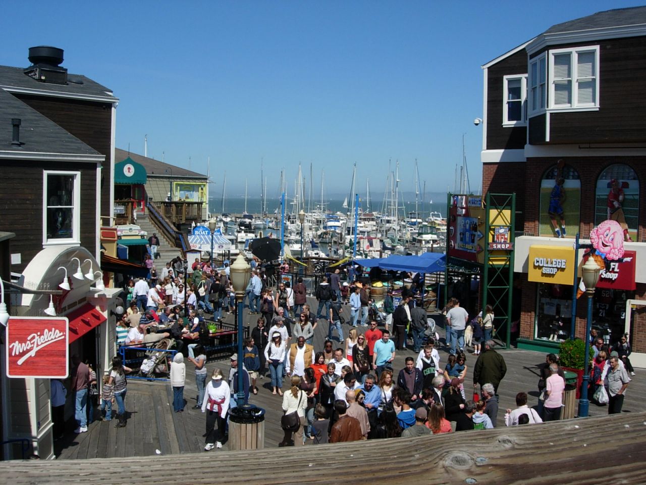 I have to eat my words. We will no doubt have repeats. :-[ This is a pleo's eye view of the crowd at Pier 39.