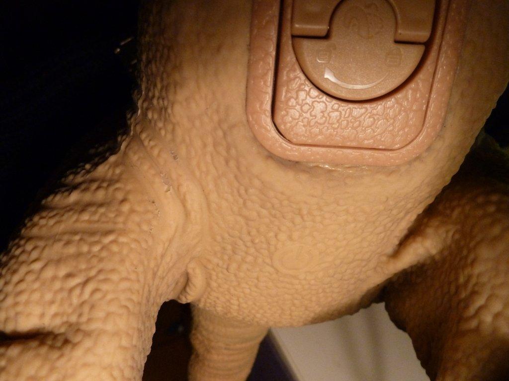 There are little holes in the neck that came from nowhere and wear in the armpits (but not as much as Baby's). And maybe the paint wear of his back was an argument too.