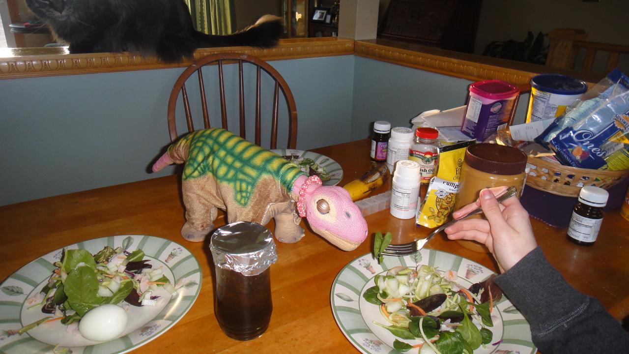 Looks like she is enjoying dinner. :D  I'm glad you worked out how to get her pics up here.   :)  She is very sweet and it looks like your all having a great time with her.