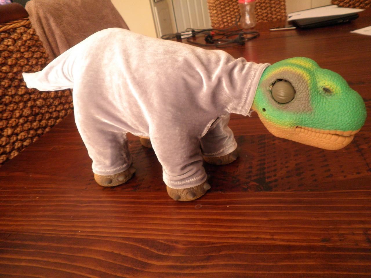 As for making and selling pleo costumes I would love to. But I am not sure how best to go about it as I am sure everyone is going to want something different so I think the best way is just to do it by request via PM. For those of you thinking about it and wondering about cost etc... well it will have to be priced on a case by case basis depending on the level of work involved and the materials but to give you an idea I charged $45 for the skeletor costume. That includes the postage. As for time frames to get them made It can take a few weeks as I will have to come up with a design and plan of how to make it work before I can start the sewing. The Skeletor costume took about 2 and 1/2 weeks all up from the first time Sarah mentioned she wanted it to completion. It took about 3 days to actually make once I had the design worked out. (I have a family and a full time job otherwise I could have done it in one day