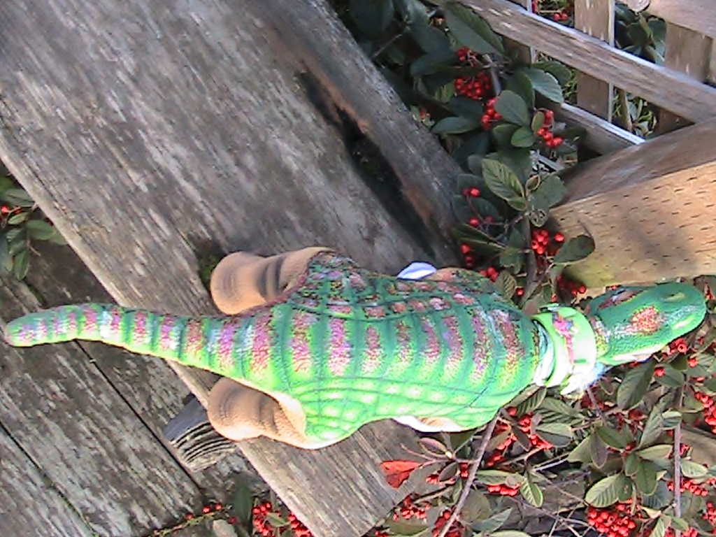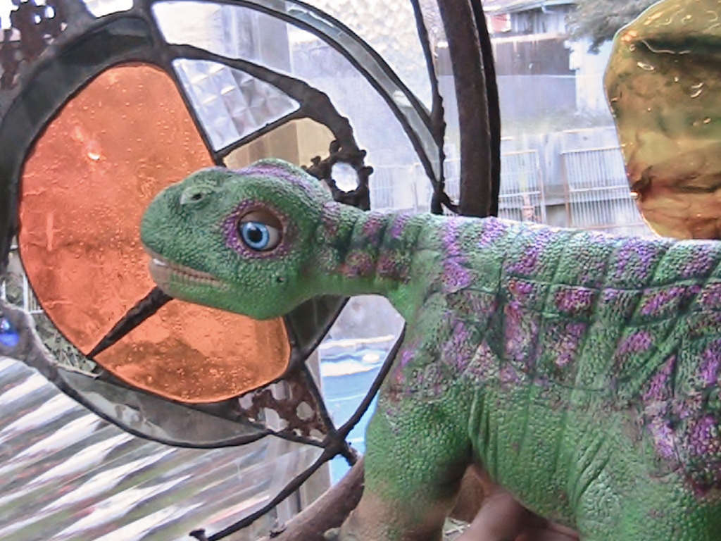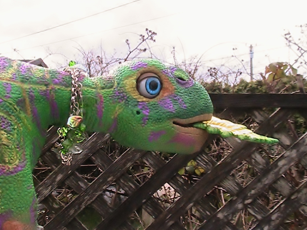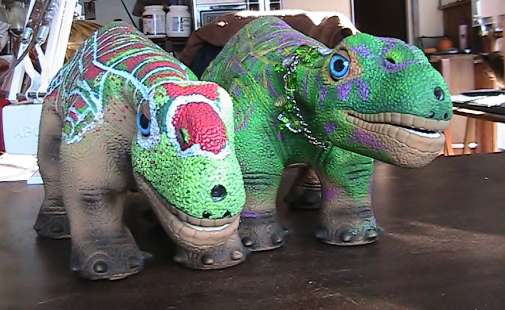 Thanks Snowy, well I started out with a plan to remove the green from the legs , but after I started a plan just hatched and "the mad Painter of the Redwoods" really took over and I had no control over my hands, it had a life and mind of  it's own, so like it or not, here is the finished creation, I am calling, "fantasy Pleo" because I do not know what else to call it. P;D P:) so let me know if it is ok or not.................