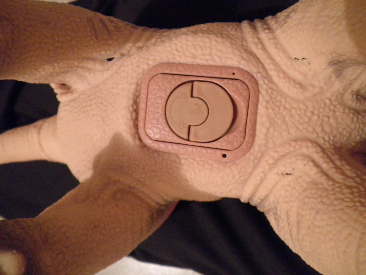 I meant the regular battery, I got in fine twice though. I think it was probably just since I am used to putting aibo batteries in which just slip in so easily. I did contact the people on pleoworld to try and see what's wrong with the serial number and code for my pleo. There actually were two stickers in the back of the booklet (one on top of the other) I tried both codes but neither worked. So far the pleo seems to be working fine. I sent many messages to the seller yet I have not recieved a reply.