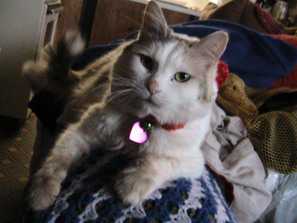 Oh, the very first one is of Freckles, a little orphan kitten along with his brother MoonPie who came froma an Indian Reservation here and have been bottle fed. My pleos went for Cat rides on Freckles and Moonpies Back a few months ago when they were a wee bit bigger. :)