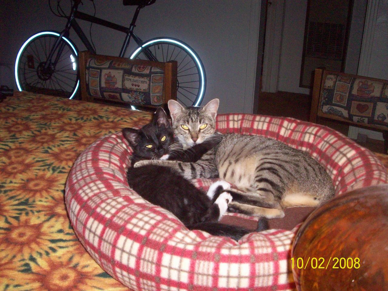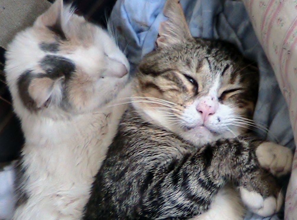 This is Rottie the 17 year old ginger and his 18 year mum, Giddy.  Rottie thinks he's tough, but still likes to sleep like this!