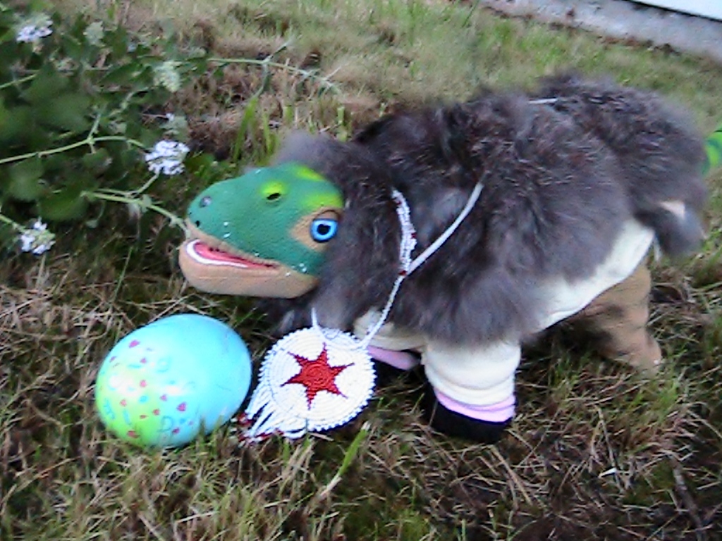Well guys, Talon I know you are asleep, an my poor little Pleos are all sleeping, half out of their minds with fear for Bleu, but mostly just excited being on the trail of Betty Bigfoot, and the adventure it has been. Not just Bleu is gone, and off schedule for her delivery to Talon and her brood, but there is a poor little Bigfootcamosaurus, a Wooly one at that, that is crying for it's adoptive Mom, Betty. Where on earth Betty found this rare little guy is a mystery, but only Betty knows the answer to that .