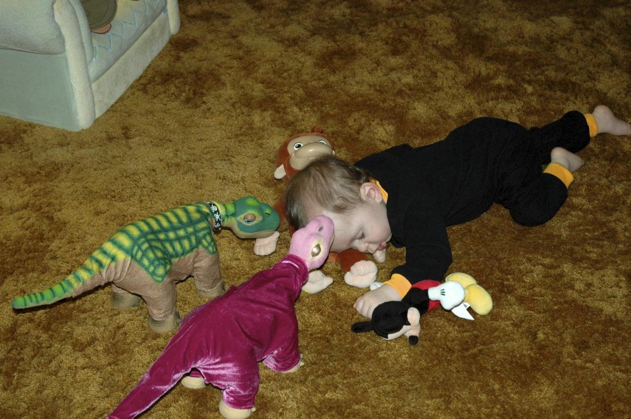 This one was actually taken in January.  Wilbur the Ugobe and Candy the RB want CJ to wake up so they can play!