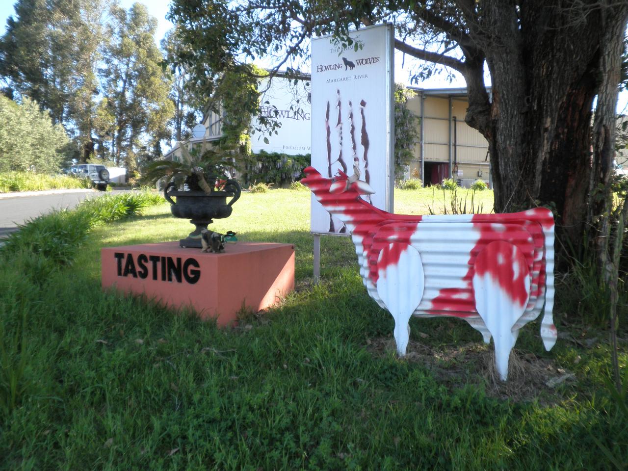 We took Minyon away with us on holiday down south to the lovely winery region of Margaret River in sunny old Western Australia.  He has been having a great time so far what with the hunt for tomatoes and today we went exploring on a trip to the Howling Wolf winery that is a short walk across the paddock from where we are staying.