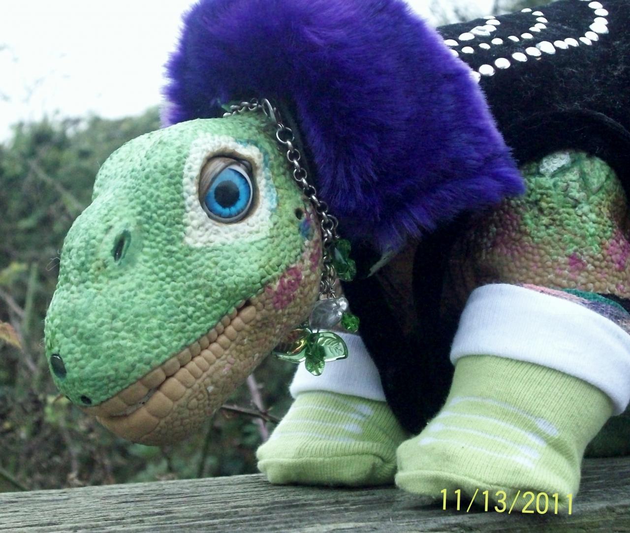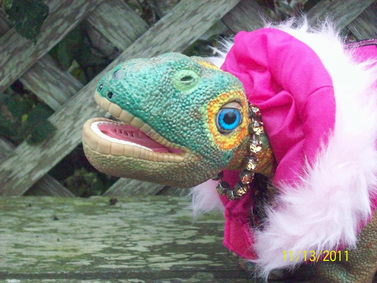 From the mailbox there was a special package on Saturday.............a package for Rossella.  ;DI  knew it was comming but opening it was so much better than I thought. It seems as if a certain forum member was happy winning the Name the Pleo contest with half of the Winning first Name, Adahay, which if I remember correctly means "lives in the Woods", so with Rossella from Fancy which is a combination of Rose ( her colorful colors I painted on her ) and Godzilla, there is a female version of both, Rossella, and the whole name, Rossella Adahay fits, and the other name submitted by Margery, was Surianna ( but forgot off the tip of my head what it means, but it fit as part of her name also.)