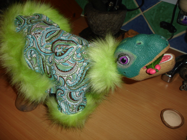 Aww that is a cute idea RWM, maybe it would be easier if you sent a photo of one of your favourite outfits to Kat and asked if she could make a Pleo sized version? I think it would be easier to make a Pleo size than a human size and cheaper too ;)