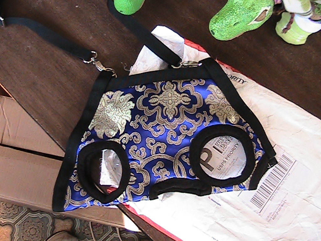 Of course if you are a male, you may not want your Pleo being carried around like this, so I have some other prizes as well, but just had to show this one off first. I have allways loved IMR's "blanket" sling Pleo Carrier, and this is a different take on that, but slightly different. It is very lightweight, and well made and has breathable fabric as well and your Pleo becomes part of you while carrying it. There were other items I looked at that were more on the line of like a baby pouch but close to the chest, may be a little strange to have a Pleo thrashing around on your chest area, though cute if asleep. The biggest drawback on the ones that were super close to the body, though very cute and more "baby like" and great for a cuddle session, is what to do with that Pleo tail. I did not want something that may break or constrict a Pleo tail . I love my other Pleo bag, but the tail is enclosed and though roomy , there is not as much room as I would like for the tail.  I do appreciate the comments and am glad that this seems to be a prize that you guys like. I will be sure to list more prizes as time goes on but thought rather then keep you in the dark, shed some light on at least one prize!  Oh, and I think I have one of these in another design, Tee hee hee, for the "male Pleo". though not nearly as pretty in my opinon...................... ;)       MS. Nova, Baby Ruth , Major Tom, Argyle, Little 45, and the rest of the Pleo Clan of the Redwoods, ( on behalf of our poor mom who is tuckered out... P:))