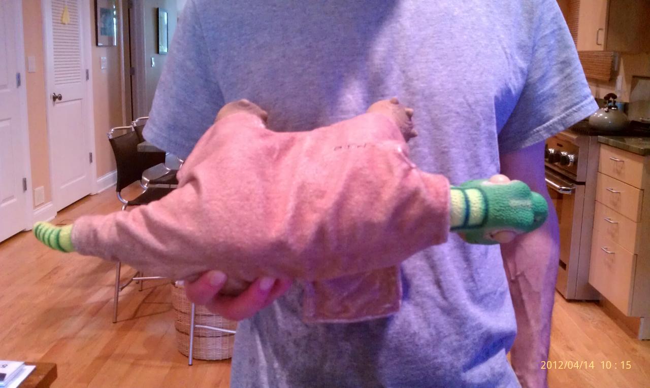 I suppose you're going to think we're very hard on our Pleo rb babies, but we were VERY careful with Moxy.  We didn't let him get his head caught on things like Sparky did.  We didn't treat him roughly.  But it looks like one neck cable is broken.    He can move up and down, but only to the left.  I am going to post 2 videos showing how he moves only to the left, and 2 photos taken with him  shut off.   My husband is holding him horizontal, and in one his head is straight and when he turns him over and holds him the same way the head flops.  He is still under warranty and they send we could send him to Hong Kong and they would fix him or replace him.  But I don't want to lose him.  I am not using any smiley faces because I don't see one that is close to how sad we feel.