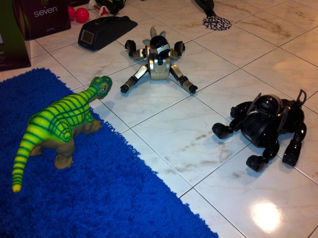 I dont' own any of the Aibos or ERS7, but do have Pleos. I love the photo of your pack, vEry colorful and looks like fun for all. Thanks for postingl           RWM and the Pleo Clan of the Redwoods