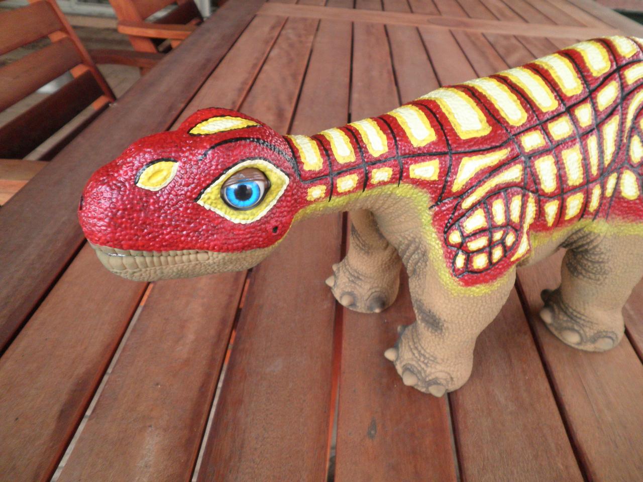 Great job Kat, Frankie looks like a whole new pleo. well done . Is his paint red and white or red and yellow? OUtside shots would be great. What operating system is he running? Can't wait to see more pics. :cheer: