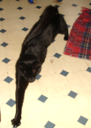 I have to use Pearl later at night due to my work schedule.  Because it's too dark in my house for her at night, I have a nice work lamp that I've been bringing inside to use when I want to get her out.  The lamp is 1000 watts, so it gets nice and warm...which means that one of my cats, Presto, wants to lay on the ground in front of it.