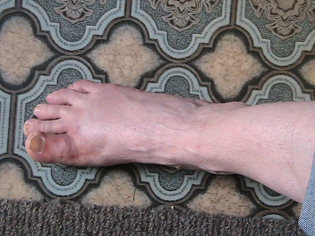 Then he put his attention on the big toe and got the last stitch out with not much trouble, He said probably another four weeks in the boot and my foot should not give me too much more trouble but the pain was because of all the procedures and bone cut. What worries me is this; He said when I come back in two weeks "we may get a X ray of your foot" He has never done that with the last three procedures, I was going to be put into a cast originally until he changed his mind when in the operating room, I took a good look at my foot while in the bath for the first time this morning and it is a bit alarming,