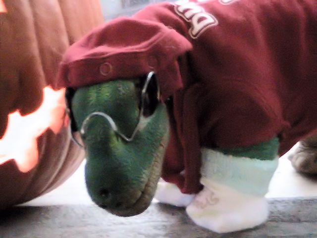 Hi Midorime,, here is a quick Cashmere sweater I just did to show you you can clothe your pleo with just things arouond the house with no sewing even while waiting. This is an old cashmere sweater that had a hole in it, I could no longer wear. I hated to throw cashmere away, so why not let my Pleos wear it,    Just an example , use your imagination. If you look at one of my many photo gallery photobooks, one is titled, NO SEW Items. They are a varied collection of no sew items I have made to inspire others to create, even children, I now love sewing, but this was a start...............