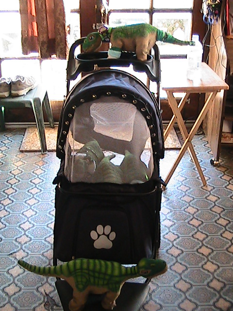 eyes closed when they are either in the Pleo Mobile or in their Pleo Carry Sling. I think it is better to not put so much stress on the neck by leaving them in that bent neck postion. Good luck. RWM