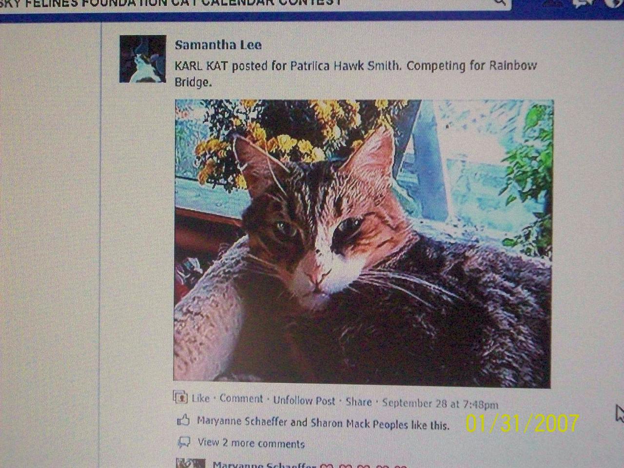 - My Cats have won spots on a Cat Calendar Contest on Facebook