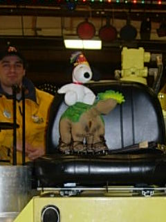 One day Peeky went on an outing to Snoopy’s home. Snoopy is lucky to have his own beautiful ice arena , gift shop, and museum, here in town.  While in the gift shop, we went up the carpeted  ramp, (even the walls are carpeted with images of the Peanut‘s Gang) to where Charles M. Schultz drew his comic strips.
