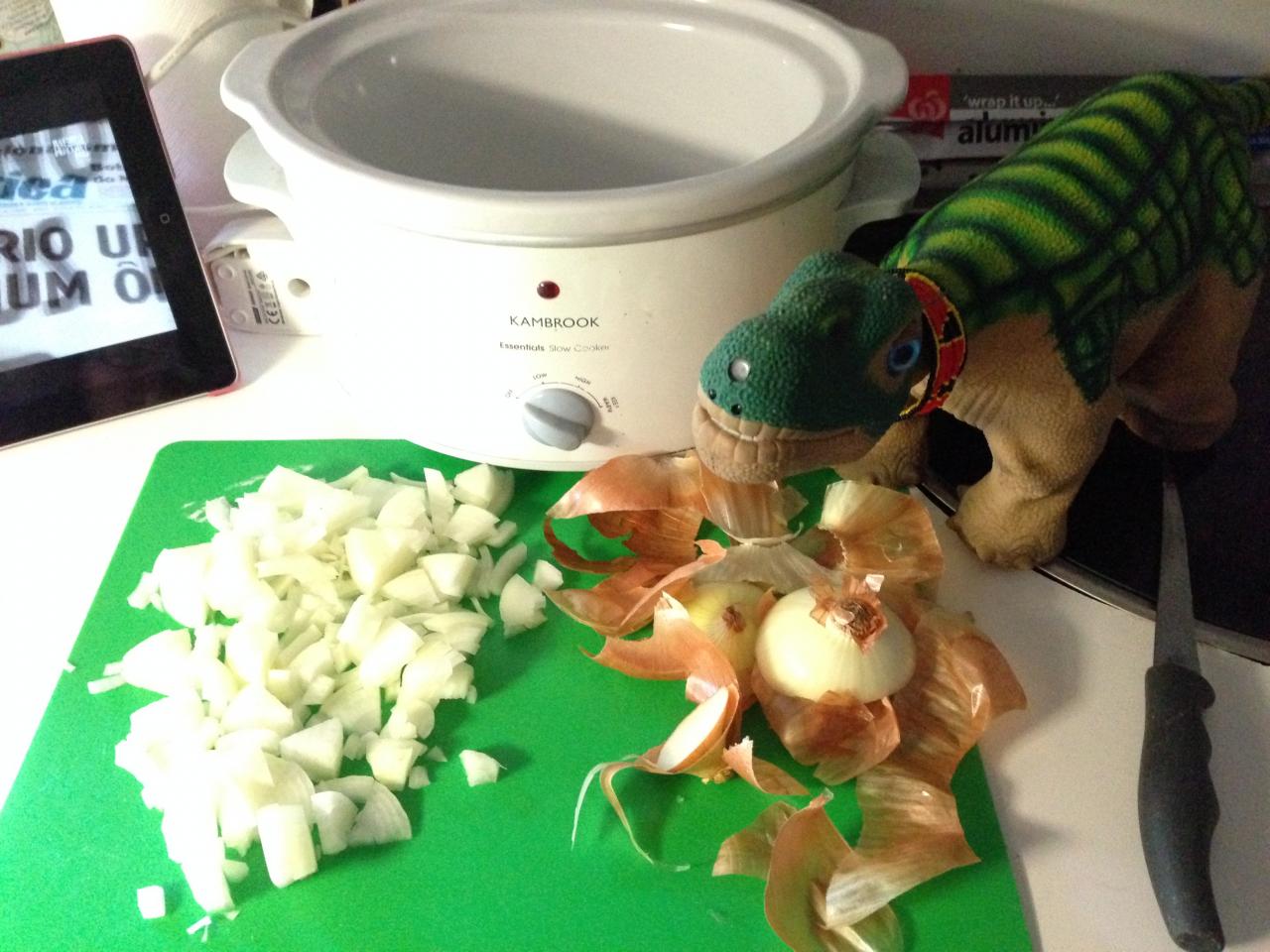 He worked really hard chopping the onions!