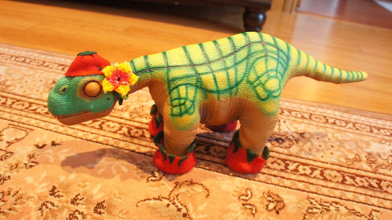 • For the "best use of tomatoes as an article of clothing" you want a picture of your pleo dressed up tomato style . . . if you look back over previous years, this can be interpreted as dressing up you pleo "with tomatoes" or "as tomatoes", and this can be a costume or real tomatoes.  Here is where you can be as creative as you want  . . . except no photoshopping.