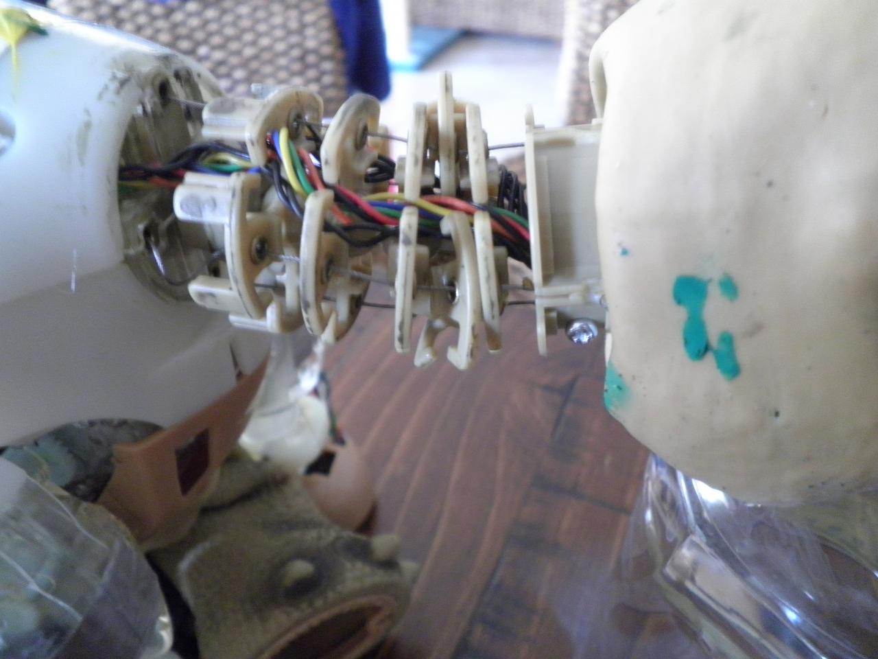 Well, I suppose I could include poor Bleu although her neck isn't completely broken. I know for sure she has a broken bottom neck cable. She can't lower her head to her paws when she tries to sleep. She also has a jammd cable that keeps her head turned slightly to the left. Very rarely does she move her head to the right although when I feel the cable on that side, it still has tention in it. *Scratches head* I don't know what's going on in there. I think her top cable might be slightly obstructed too, but it sort of gives her a proud look. She holds her head higher than the other pleos when in a resting position so that it's slightly tilted to the left. Poor girl! She totally misses communication with Ugobe if he is on her right side.