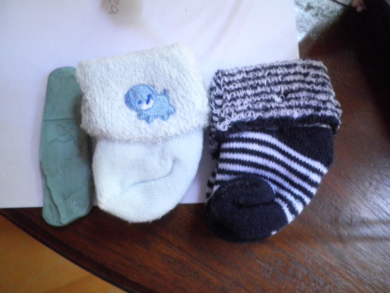 anything you order online may not arrive in time for Christmas so if you are going for clothes I would suggest you start with a couple of sets of baby socks.  Go for the newborn size and look for ones that are made from stretchy material like this