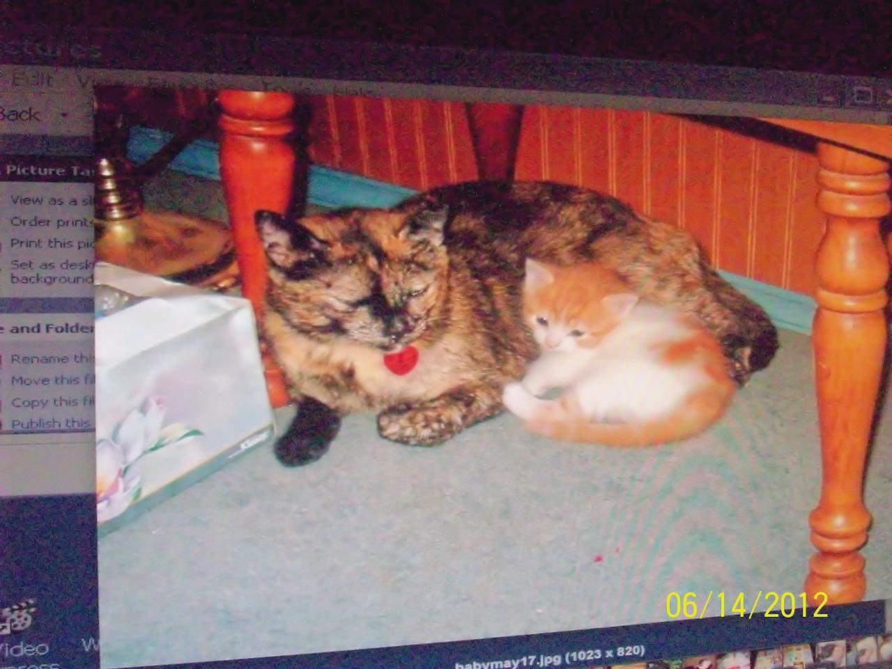 If Dintas death were not bad enough, and this was on Dec. 4th, two more cats have been sick. our two kittens that we adopted , one on August 9th, a little girl named Ginger and then another little boy, named Hans on October 12th. Both had viruses, and Ginger was the worst with a high fever of 106.1 three days before Christmas. SHe is now over it, but our little boy, Hans has been having Loose stools for weeks now and I am just worn out with vet visits and sick cats. Hans acts great and looks good but he should not be having these constant loose stools. He is now on a special diet and I am hoping this helps him and avoids another vet visit on Monday....Anyway, this is why I have not been here, just too much to handle with "real " life and death.