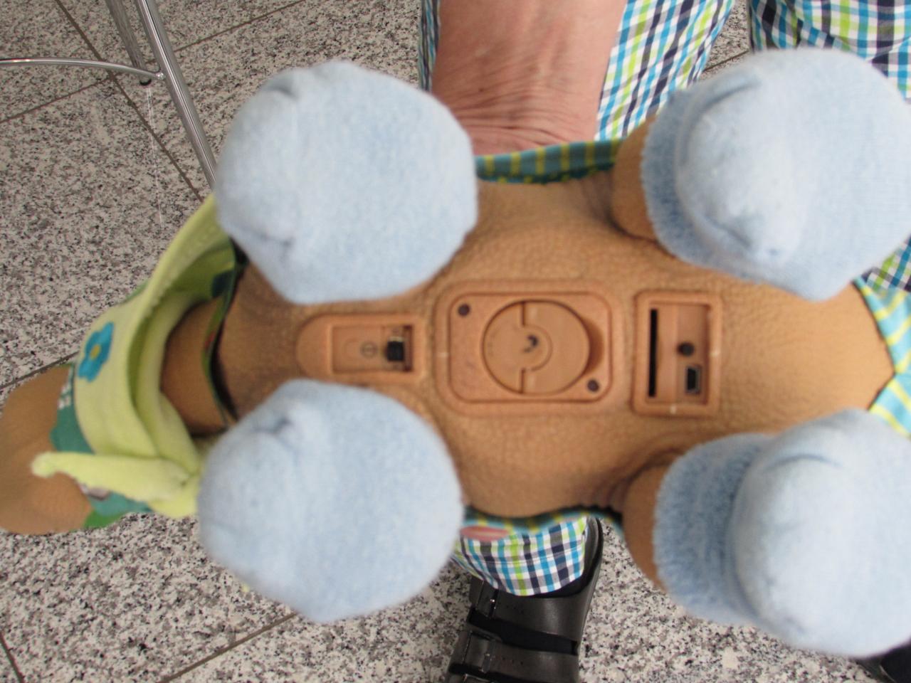I think we all know about the skin problems of Ugobes  :(  But last week I had a very special one : I bought an Ugobe on ebay. He wasn't so expensiv but the seller stated it in good shape. When he arrived I mentioned a strong odor of smoke. And so the problem began. I tried everything to clean pleo's  skin but nothing took away the strong odor. Everytime I took little Kahuna in my arms he smells of smoke. So we decided to removed his skin- that was the only way to get him cleaned - and put a Reborn skin ( from a spare-part Project / we had one from a broken reborn ) on him.