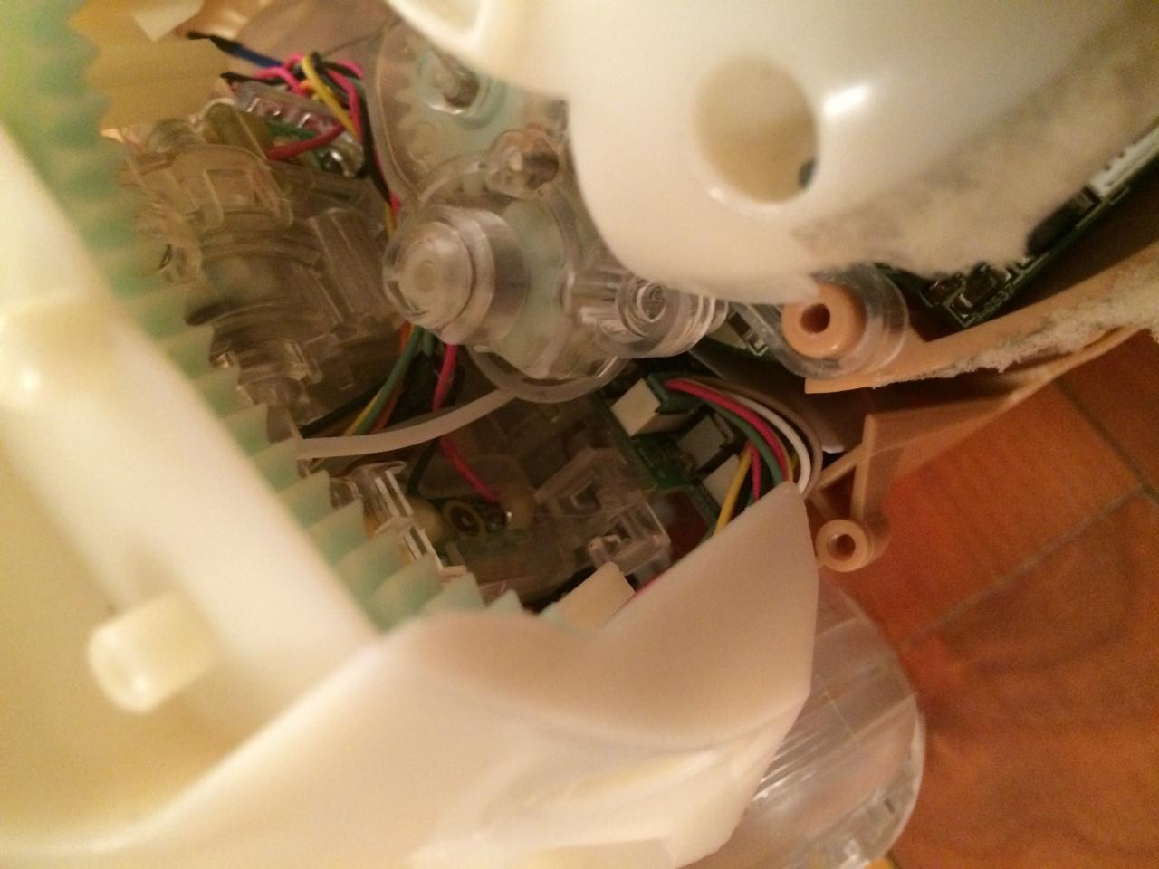 I did lift the front panel a bit and take a look at what's directly beneath it. From what I could see, all wires seemed to be attached properly and nothing looked strange or felt loose, but I don't know what a working RB should look like on the inside, so I'm posting some pictures here as well in case someone else might see something I didn't.