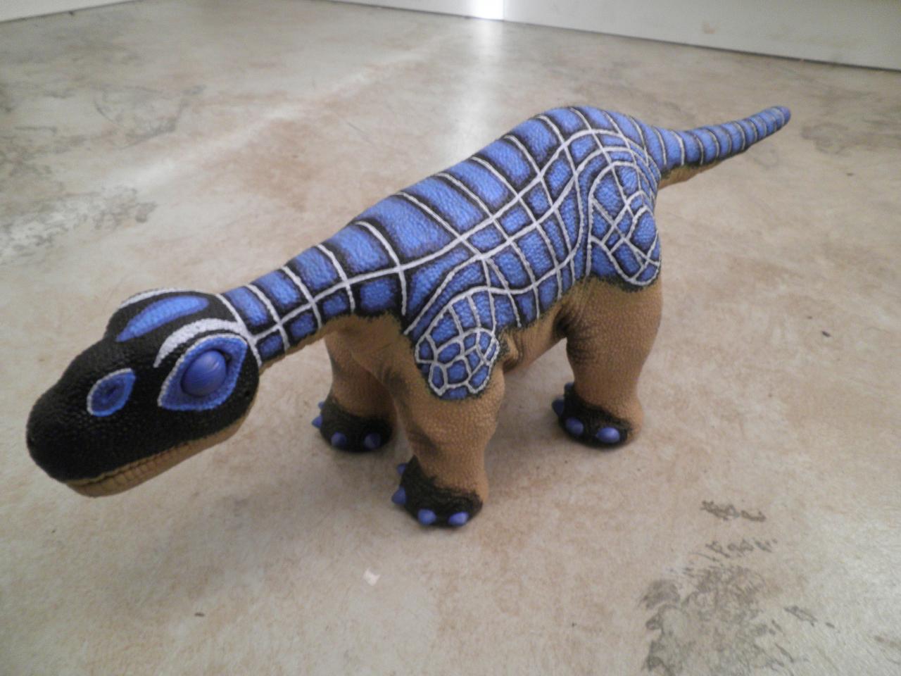 Hello taoworm23.  I bought one of the first Pleos, then added another about a year later.  When their skins started to crack and fail, my wife made capes for them.  A few years ago, I put them on the shelf, because their skin was in too bad a shape to wake them up and damage them more.  I figured that some day I might figure out how to give them a new skin, or someone else would figure it out.  It has been a while since you posted this and I was wondering if you made any progress on new skins or other repair methods.  One thought I had was to take the skins off and coat the insides with some elastic product to hold all the splits together, then coat the outside with Gibbs.  Any more thoughts?   :dino-chase: