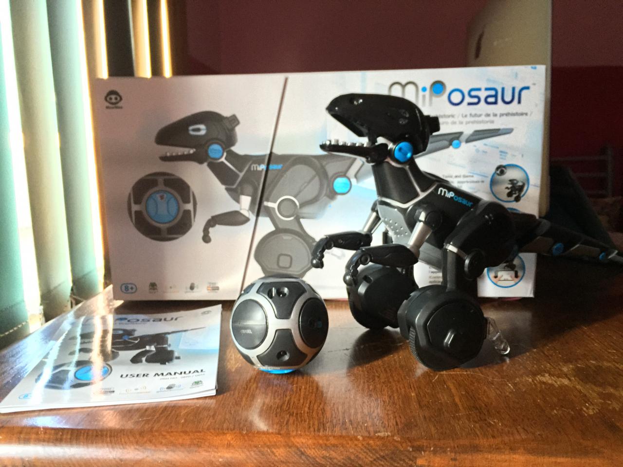It also claims it responds to your hands, the track ball you can see in the photo or the app, and may or may not obey depending on mood. The ball itself can be used to change the dinos mode and has multiple transmitters so the connection doesn't drop everytime it rolls over. I think its the first time I've seen the ball itself be robotic as well as the dino.