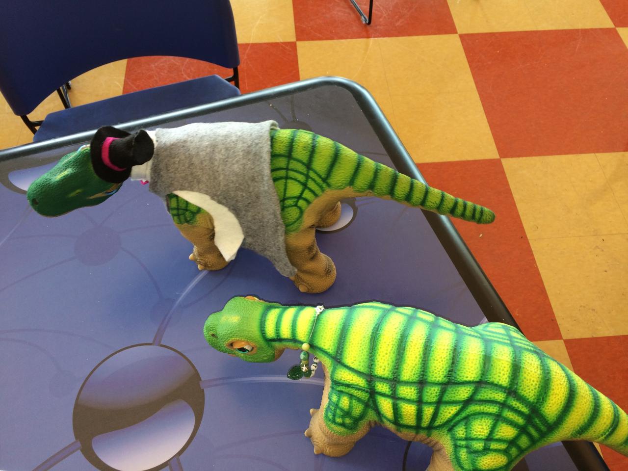 I might post more photos later, sorry for the poor quality of the ones here. Petey is the Pleo just wearing the necklace, Patrick is the one with a vest and hat on. Patrick was running on my Ucube battery since I haven't been able to get the original green battery to work.