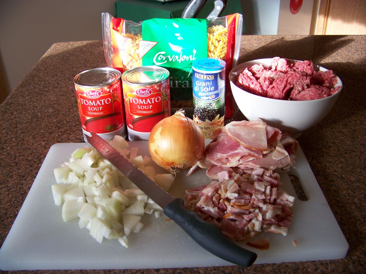 - Use only one tin of soup and a couple of good sized tomatoes, finely chopping and adding the tomatoes with the bacon.