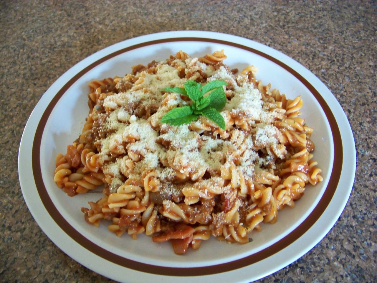 Drain spaghetti of all water in a collander. If you wear glasses, this is where we really need windshield wipers. After spaghetti is drained, put spaghetti on a plate and pour the sauce on top. Sprinkle Parmesan cheese. If not spicy enough, get out the Tabasco sauce. ;)