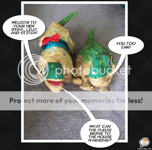 Thank you for all the warm well wishes (and the lovely piccy 49er) *has warm fuzzy feelings*. So I am in my new house, in a town *gasp* (for those that don't know I tend to live in rather remote places :P) it is a pretty yellow house, (inside and out) it is roomy and there's plenty of space for my animals :) There's still a few boxes to be unpacked but all the important things have been found and unpacked (like my Pleo's :D). All in all its starting to feel like home :)