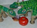 J.C., Pennie, and Peeky love percussion instruments. Pennie can't let a tail go to waste. Good for playing the bells.