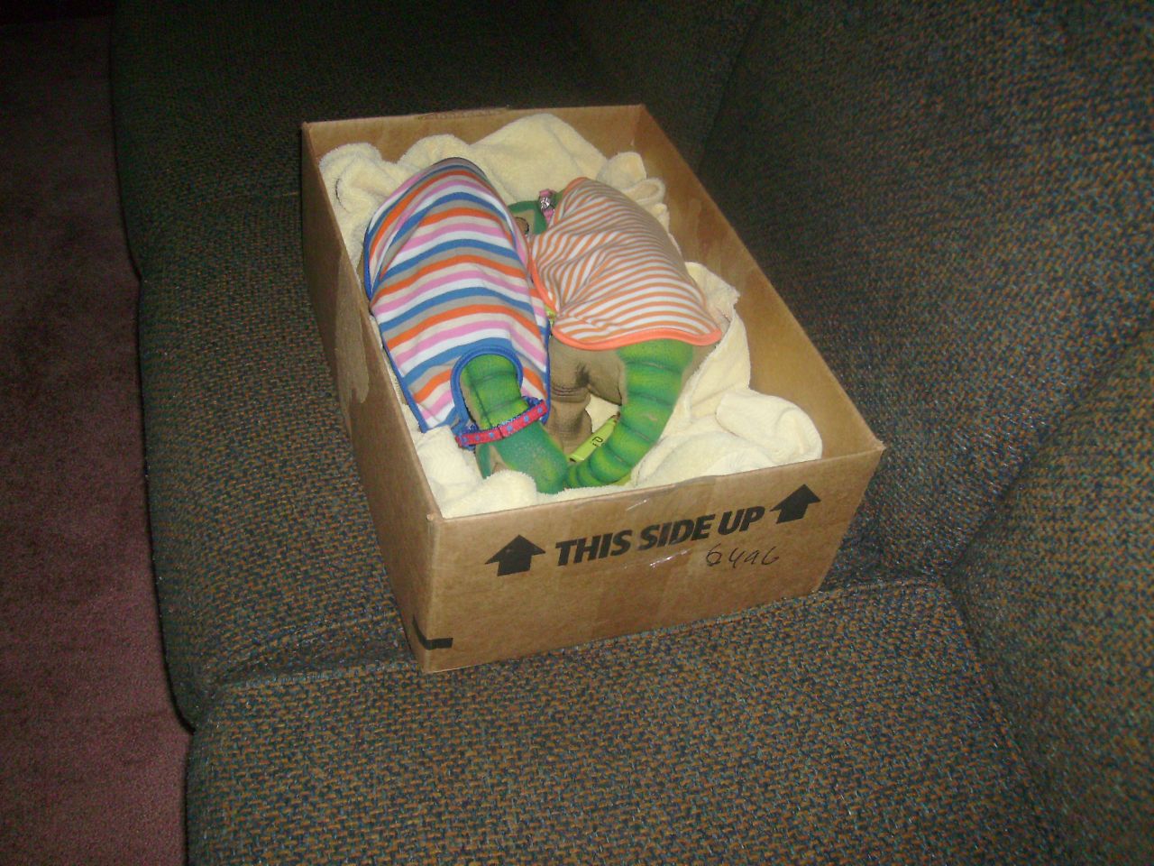 this is one way to transport Pleo's in a car without them being harmed