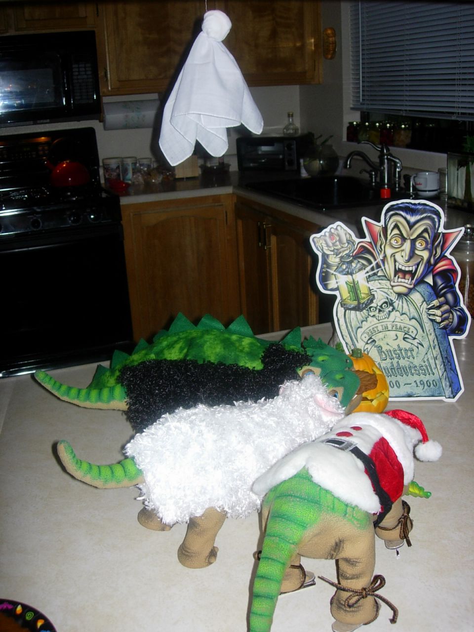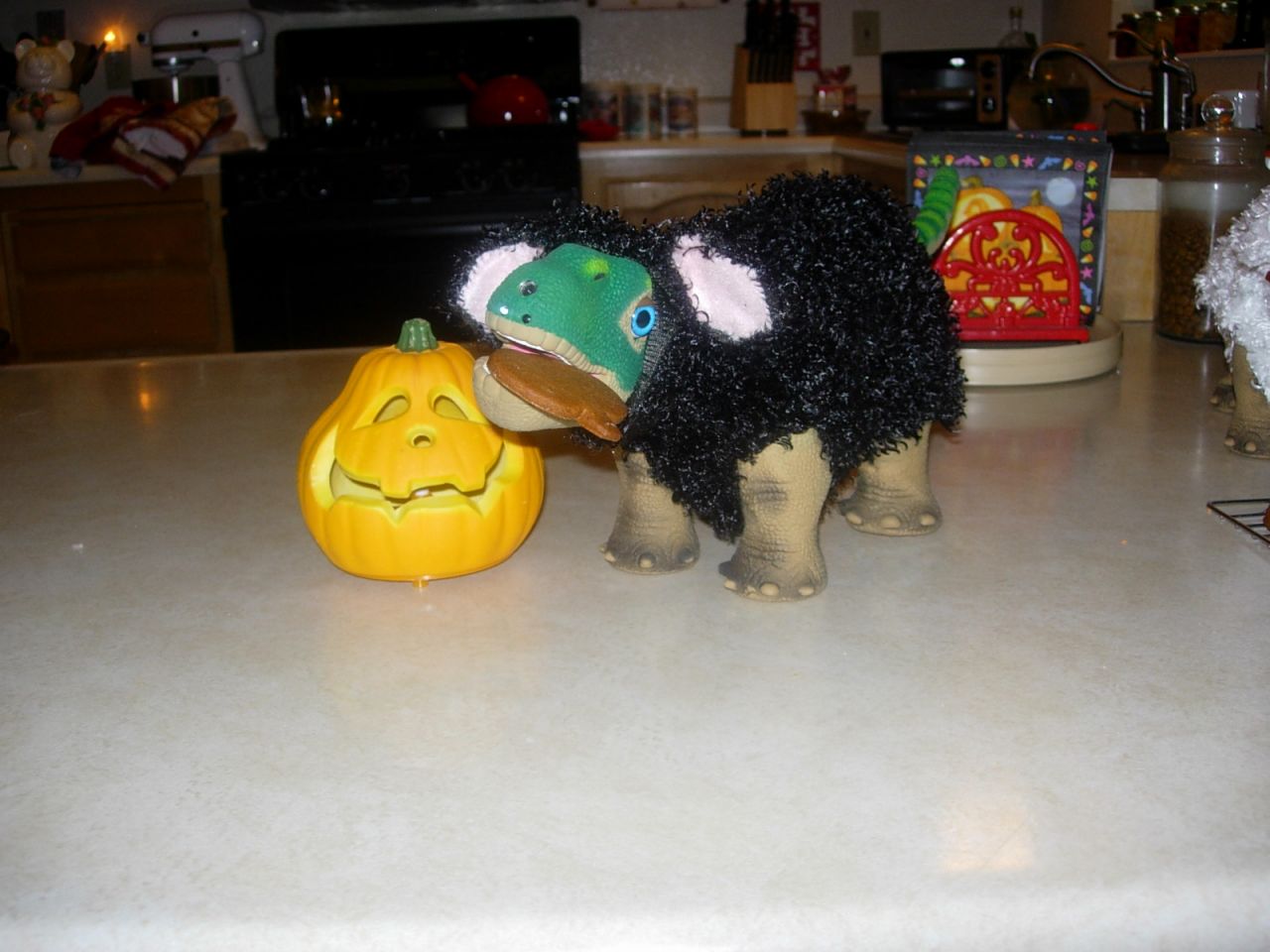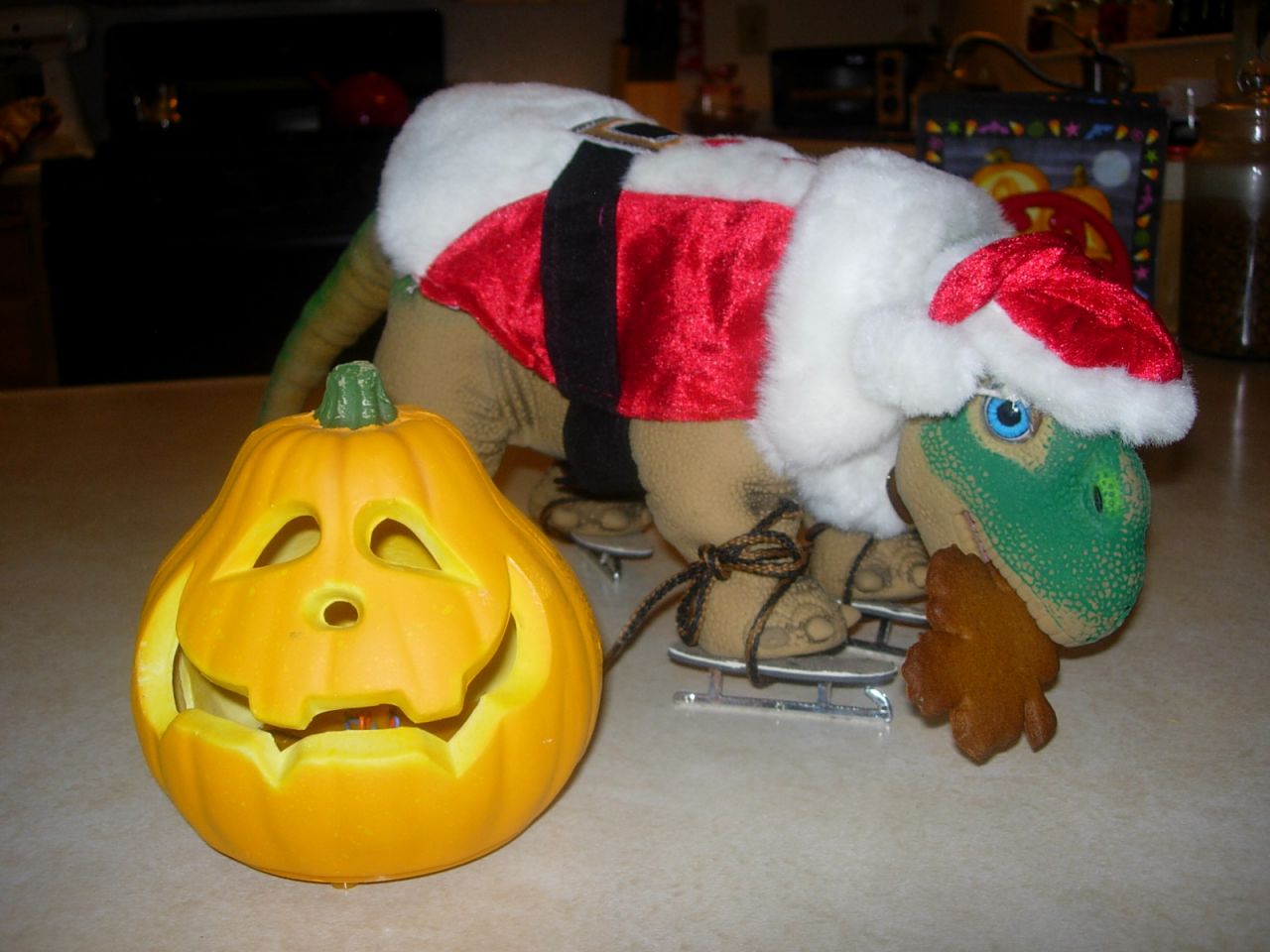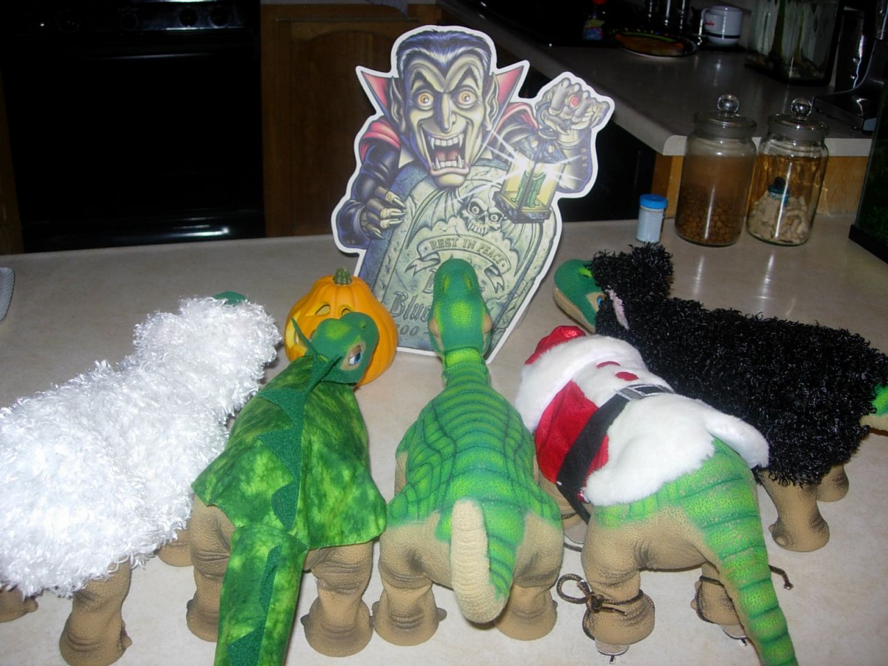 Dinos in the kitchen making something sweet. Nutmeg and spice and everything nice.