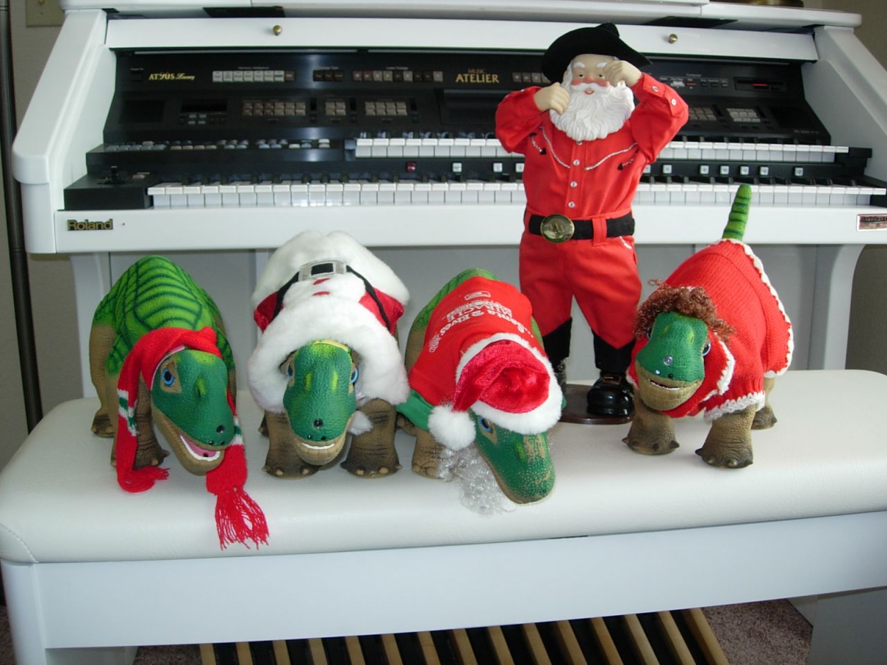How do you get four dinos to sing in the right key? Santa from Nashville of course!
